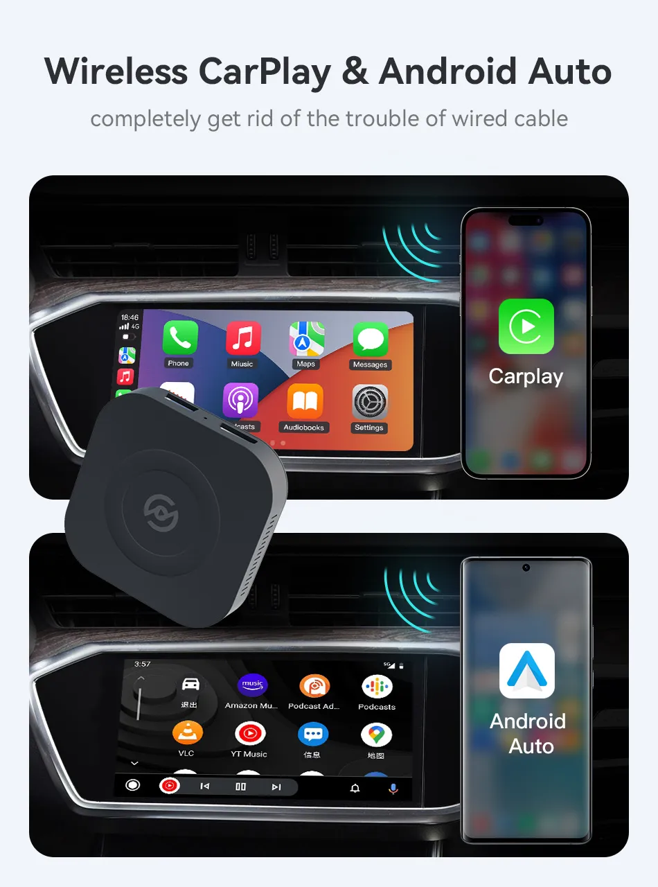 For original wired CarPlay Cars, upgraded to Android system, Wireless CarPlay and Wireless Android Auto